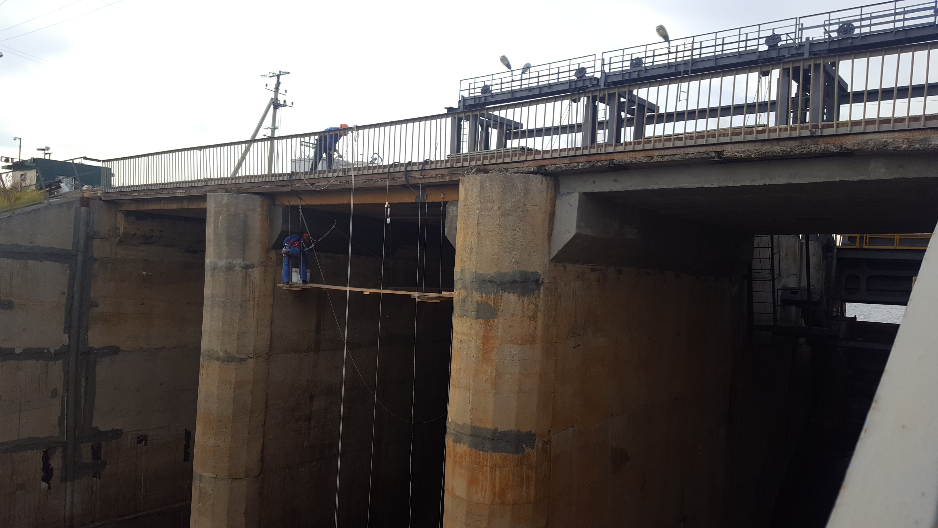 Июль-Сентябрь 2017г: Ремонт и гидроизоляция бетонных конструкций моста через паводковый водосброс на гидротехнических сооружениях Сургутской ГРЭС-2, г. Сургут